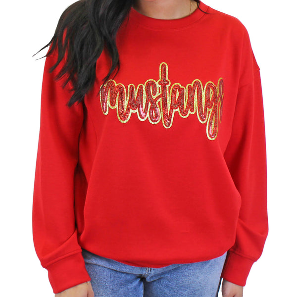 Women's QuarterFour Mustangs Crewneck - RED / SM is backordered and will ship as soon as it is back in stock.