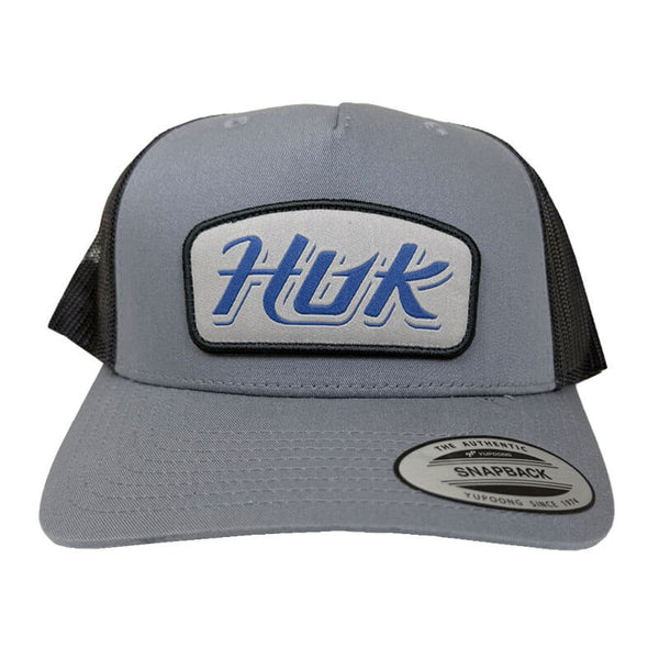 Men's Huk Script Patch Trucker Cap - NIGHT OWL / OS is backordered and will ship as soon as it is back in stock.