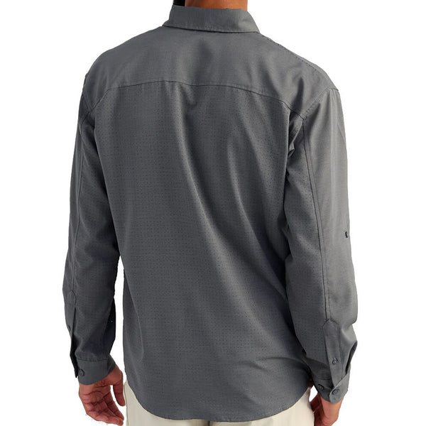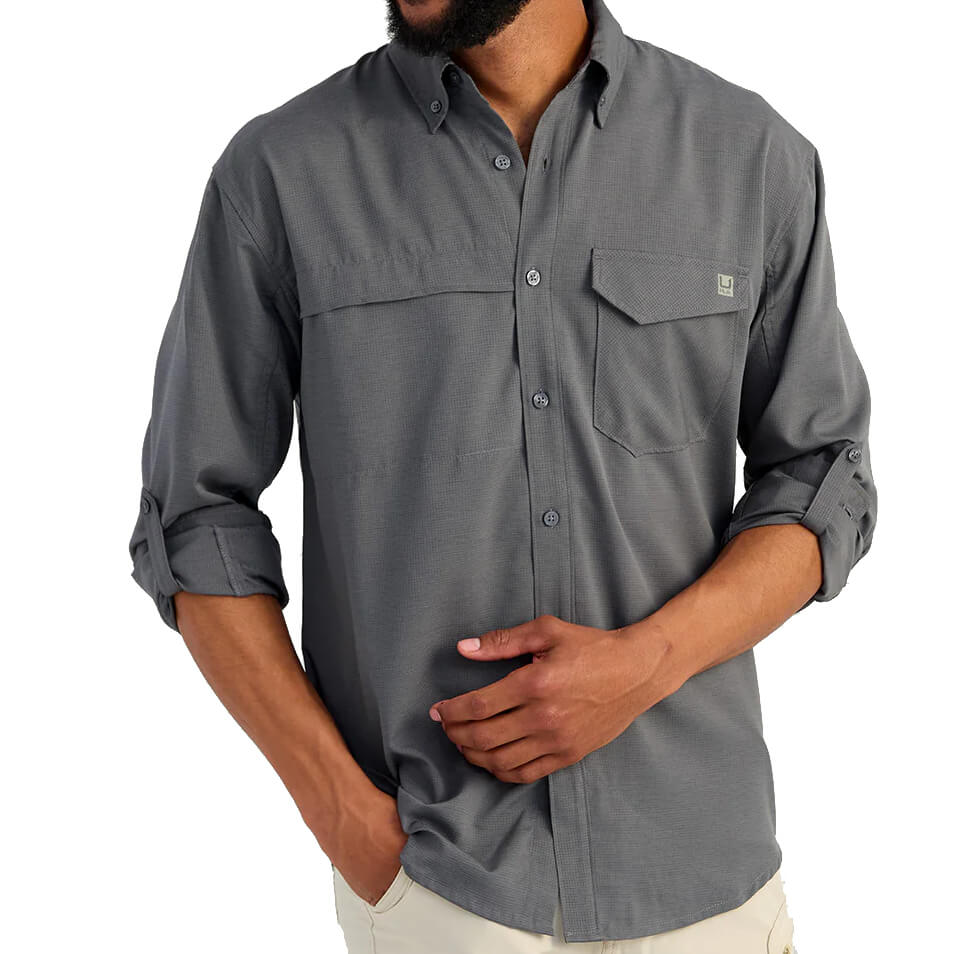 The Huk Tide Point Long Sleeve provides superior performance, designed for comfort and durability both on and off the water. This product offers 30+ UPF protection, mechanical stretch and an updated ripstop quick-drying fabric. Unlike other fishing-first button downs the Tide Point looks sharp enough you dont' have to make excuses for wearing it around town. The laser perforated back panel delivers gold standard breathability without bulky flaps and extra material and the hidden sunglasses wipe is just as clutch in the truck as on a boat.