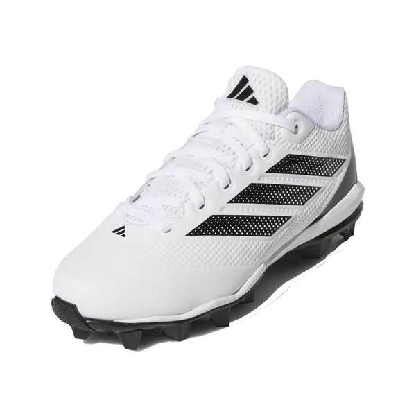 These kids' adidas baseball cleats are made to make an impact on the diamond. Their lightweight yet durable synthetic upper and supportive midsole provide confidence in the batter's box or out in the field. The cleated rubber outsole gives them all the traction they need to swing their hardest.