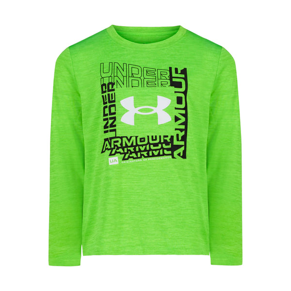 Youth Under Armour Logo Frame L/S Twist Tee - HYPER GREEN / 5 is backordered and will ship as soon as it is back in stock.