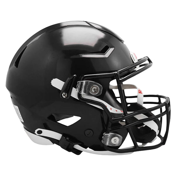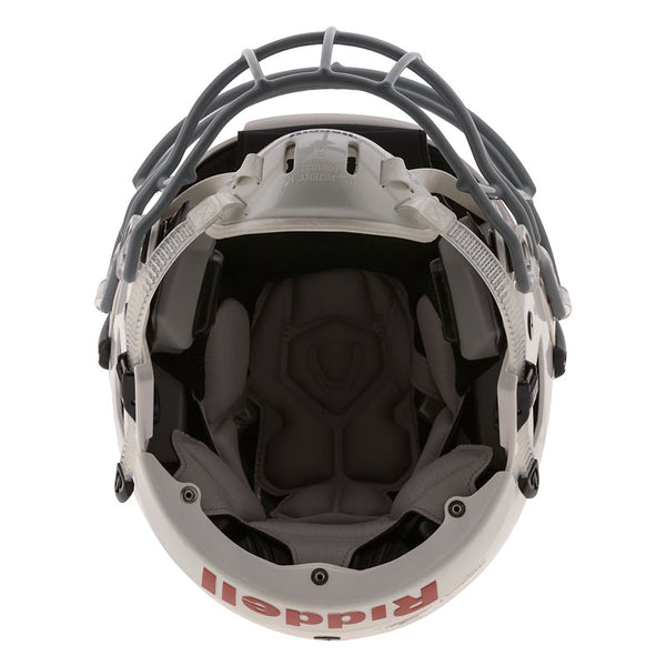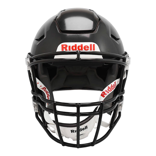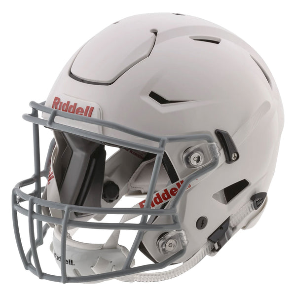 Designed with the Flex System, the Riddell Youth SpeedFlex Football Helmet is engineered to help reduce the force of impact transferred to your young athlete. The helmet features a ventilated design with a Tru-Curve liner system and a 4-point inflation system for protection and comfort and an HS4 face mask with an all-points quick-release attachment system. Made in USA.