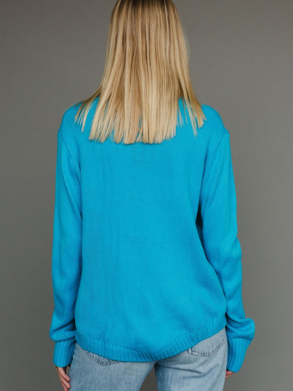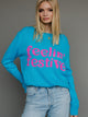 Women's Feelin' Festive Sweater - BLUE / MD is backordered and will ship as soon as it is back in stock.