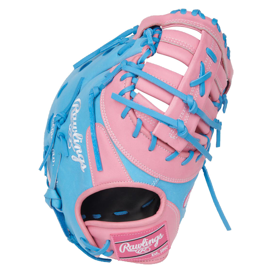 Make a bold statement at first base with the Rawlings Heart of the Hide 12.75-Inch First Base Mitt. This glove features a fresh Pink and Columbia Blue colorway that blends elite style with legendary performance.