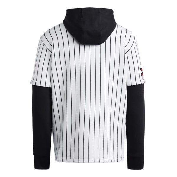 Crafted from soft fleece and boasting a drawstring-adjustable hood, this baseball-inspired jersey will help you feel warm on chilly game days, whether you’re involved in the action or standing on the sidelines.