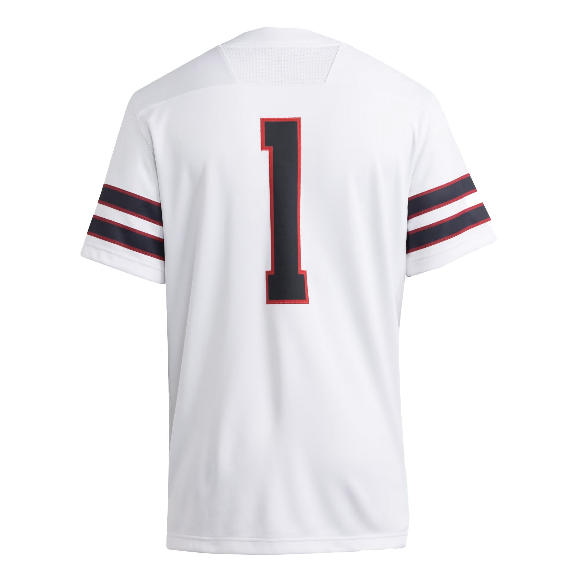 Rep your Texas Tech pride wherever you go in this adidas football jersey. Built for the most dedicated fans, it sports the same spirited look as the ones worn by the Red Raiders when they're battling it out on the road. Made from doubleknit polyester fabric, it's soft and durable enough to stand up to a full season of cheers, victories and nail-biting finishes.