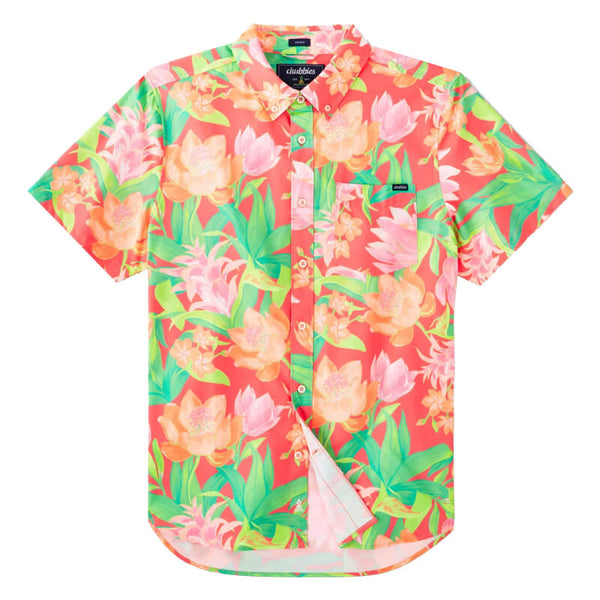 Get ready for a outdoor adventure in this Chubbies The Tropic Like It's Hot Performance Short Sleeve Sport Shirt in Coral. This The Tropic Like It's Hot Performance Short Sleeve Sport Shirt by Chubbies features 4 way stretch, lightweight and moisture-wicking, slightly shortened sleeves, and a curved hem, front chest pocket. This Chubbies The Tropic Like It's Hot Performance Short Sleeve Sport Shirt is made of 86% Polyester, 14% Spandex.