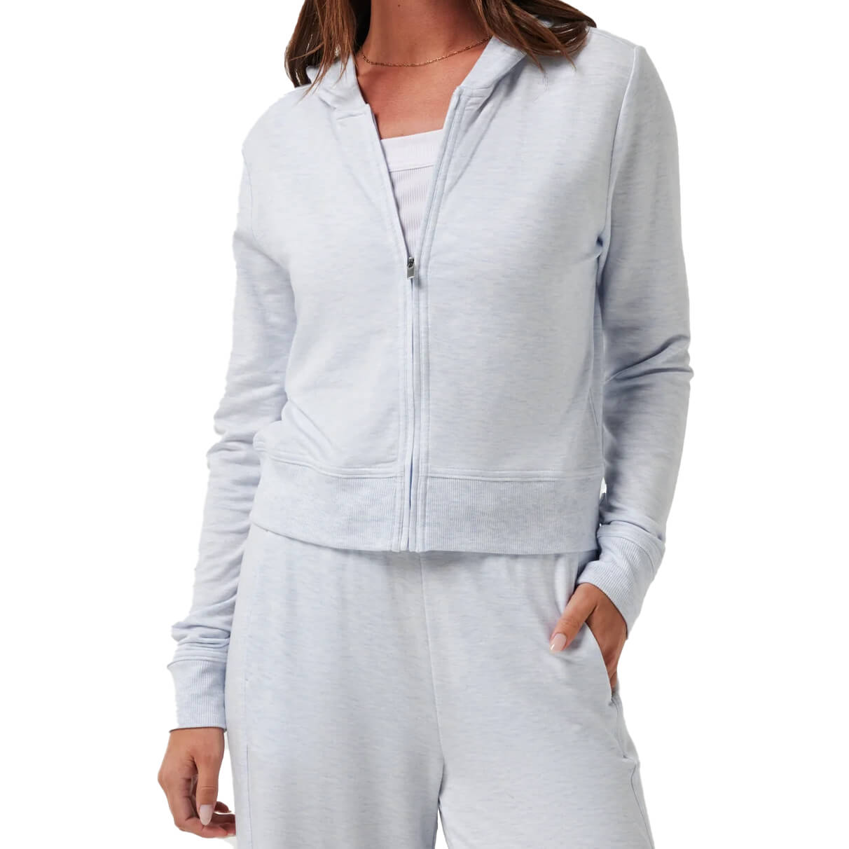 Women's TravisMathew Cloud Terry Zip Hoodie - HTR WATER / SM is backordered and will ship as soon as it is back in stock.