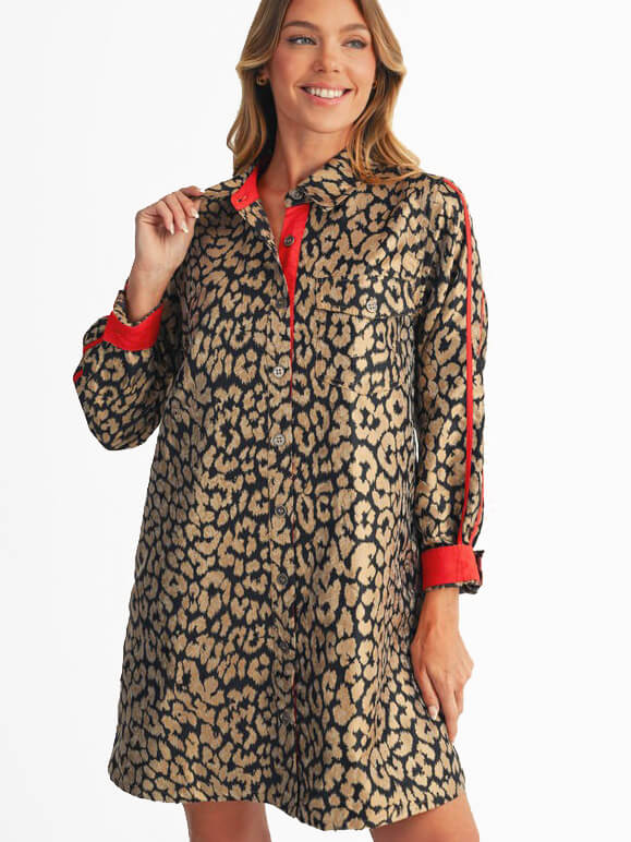 Women's Brinkley Dress - RED/ANIMAL / SM is backordered and will ship as soon as it is back in stock.