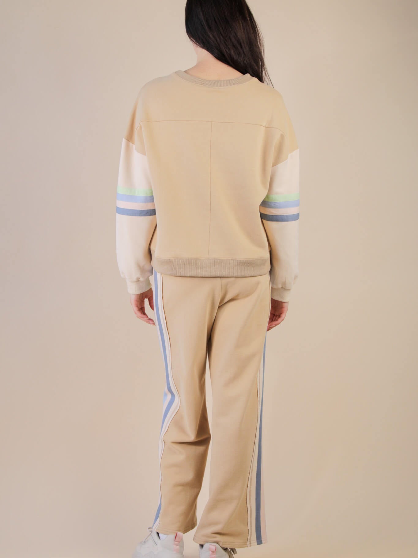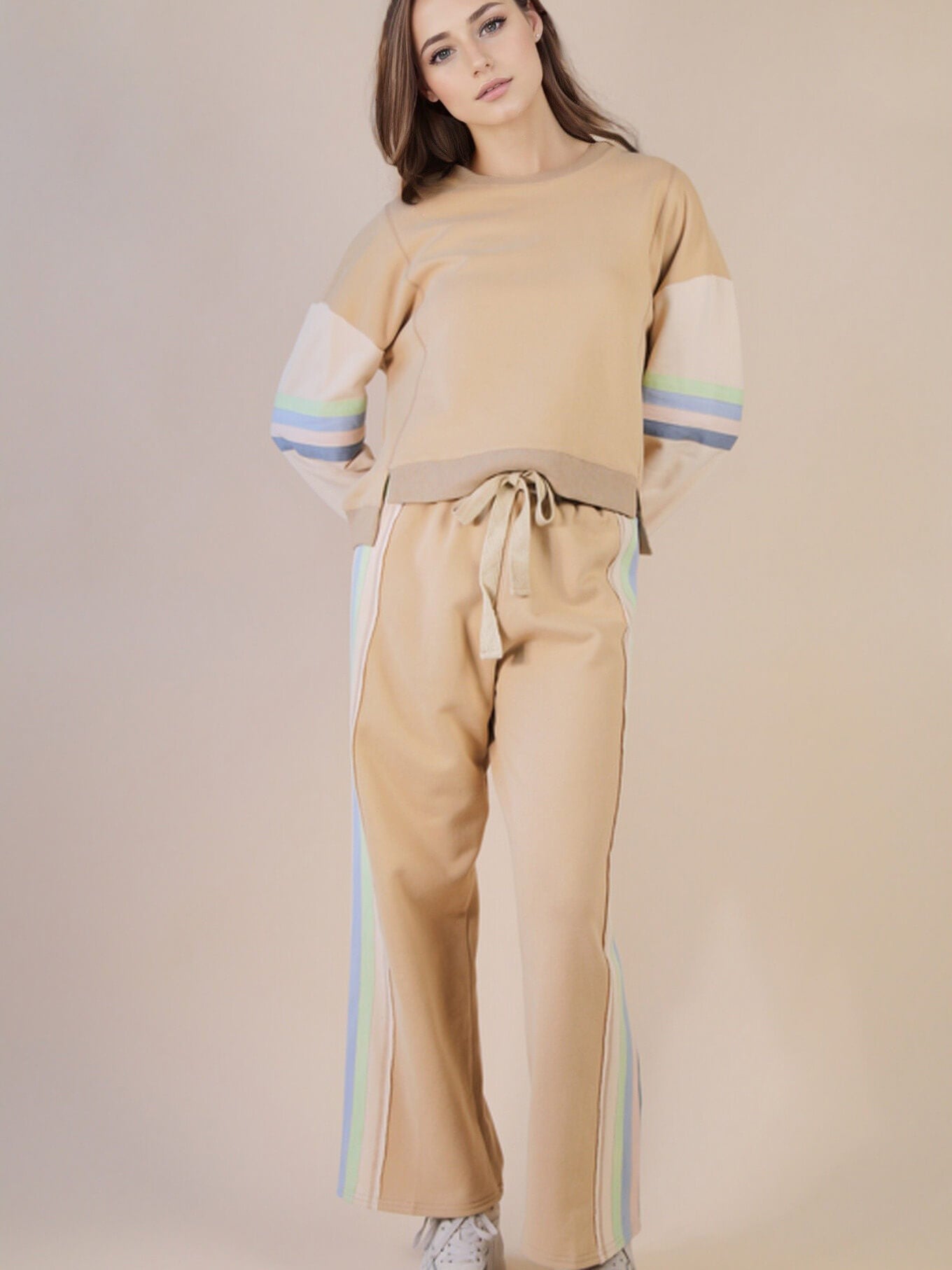 Color Tape Detail Knit Top & Pants Comfy Set.