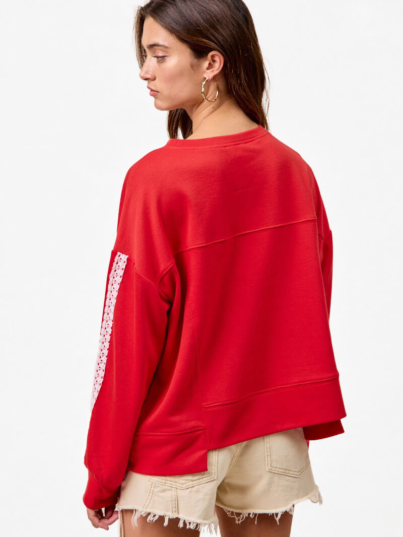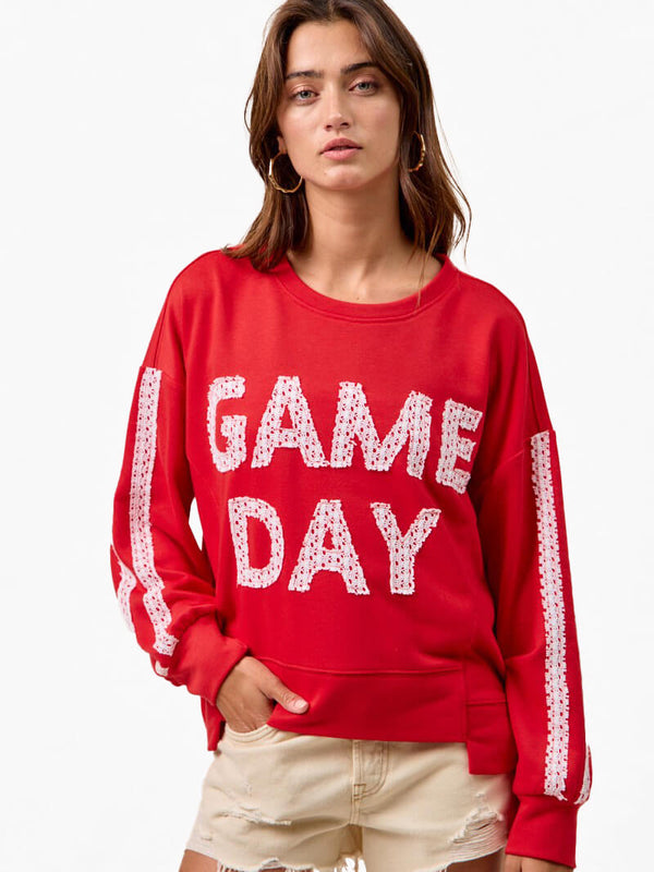 GAMEDAY THEME LACE PATCHWORK TOP WITH UNEVEN HEM