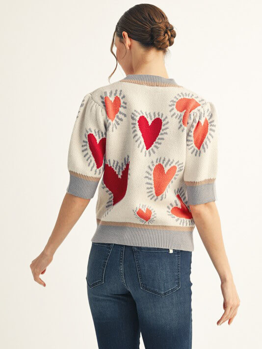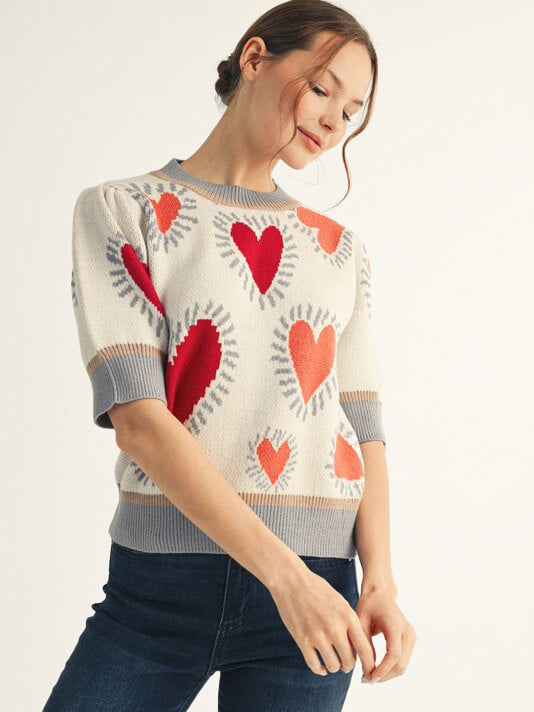 Short puff sleeves lovely heart sweater top.