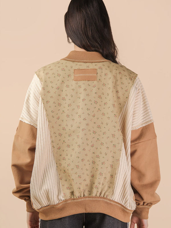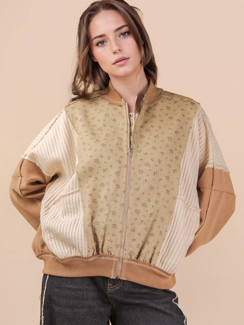+ Floral Printed Contrast Knit Oversized Jacket.