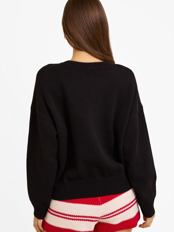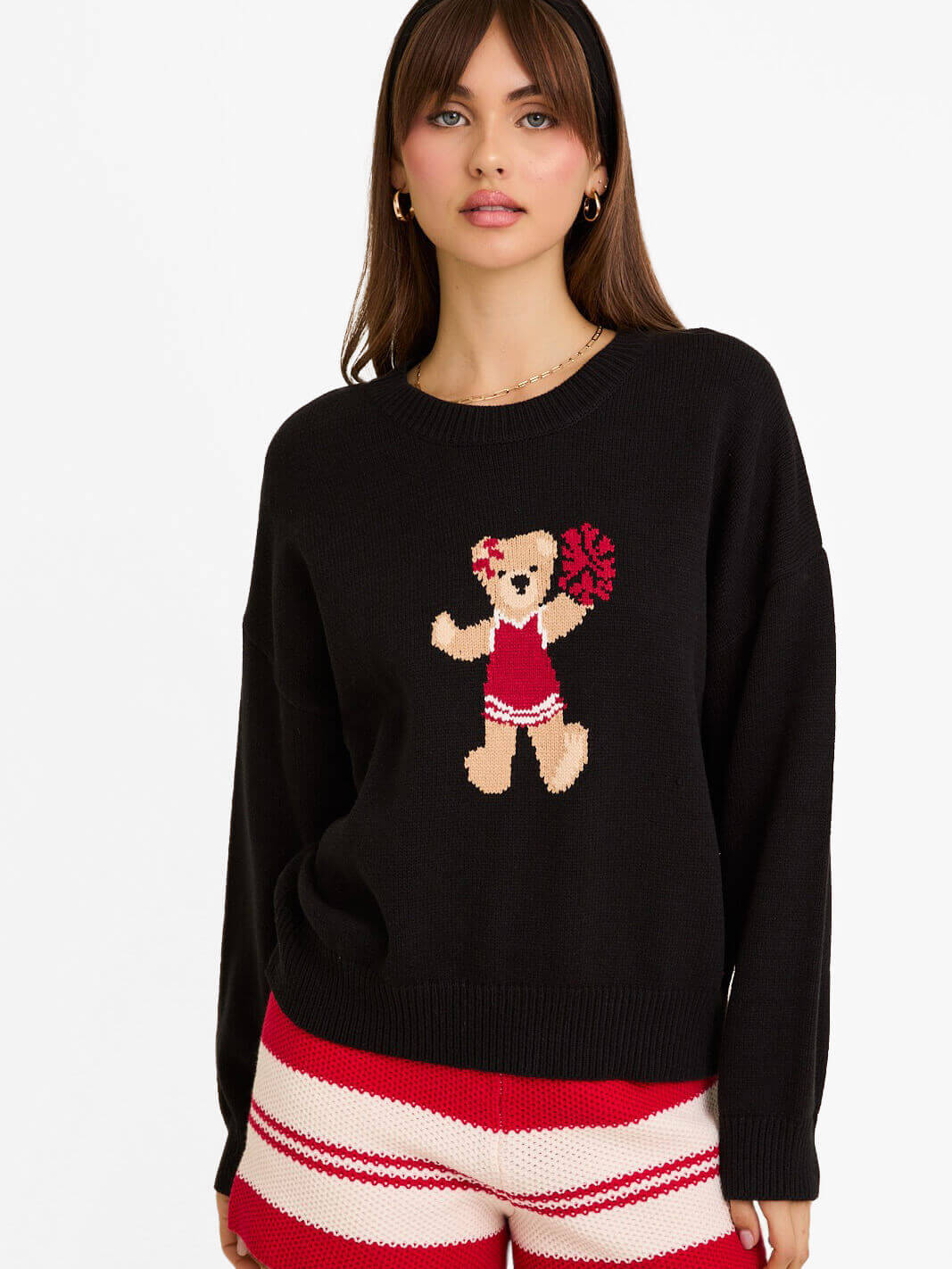 Women's Teddy Bear Cheer Sweater - BLACK / SM is backordered and will ship as soon as it is back in stock.