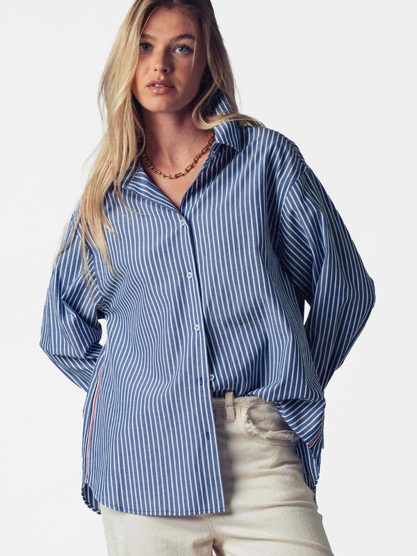 Women's Twill Tape Shirt - NAVY STRIPE / SM is backordered and will ship as soon as it is back in stock.