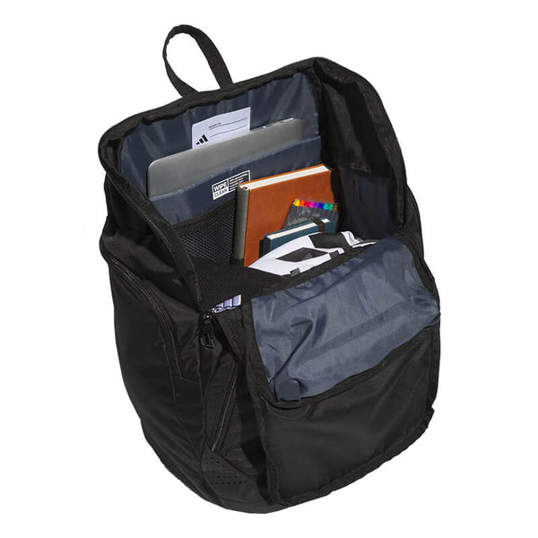 Game day or practice, you'll be able to carry all your gear in this adidas backpack. Keep your wet and dirty things separate from everything else with a ventilated zipper pocket. Carry it with the adjustable shoulder straps or use the trolley strap to attach it to your wheeled luggage.