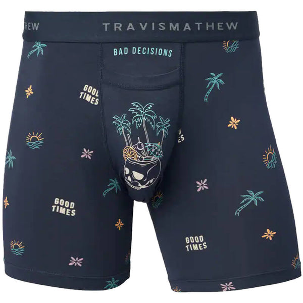 The RUM RIGGER is considered TravisMathew’s “Cloud Boxer.” Incredibly soft fabric and no-chafe construction deliver uninhibited comfort, while a tropical skull drink printed on the pouch & series of other fun graphics serve up the perfect amount of personality.