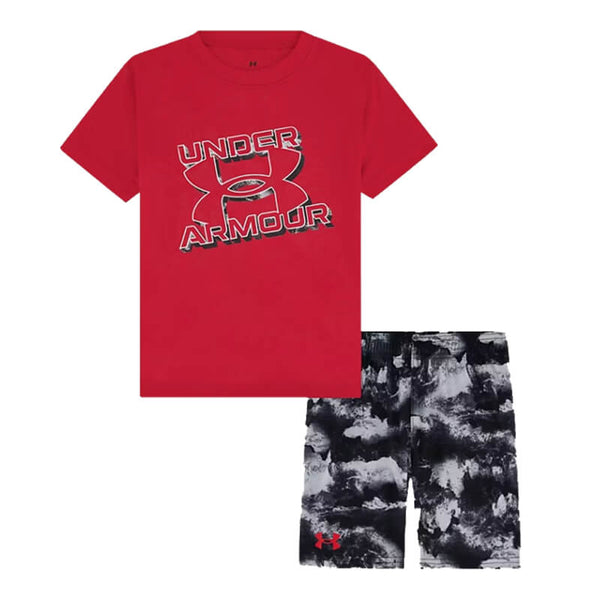 Toddler Under Armour Tech Print S/S Tee & Shorts Set - RED / 2T is backordered and will ship as soon as it is back in stock.
