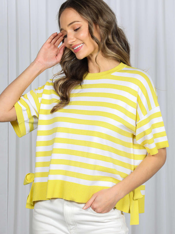 Women's Bow Stripe Sweater - YELLOW / SM is backordered and will ship as soon as it is back in stock.