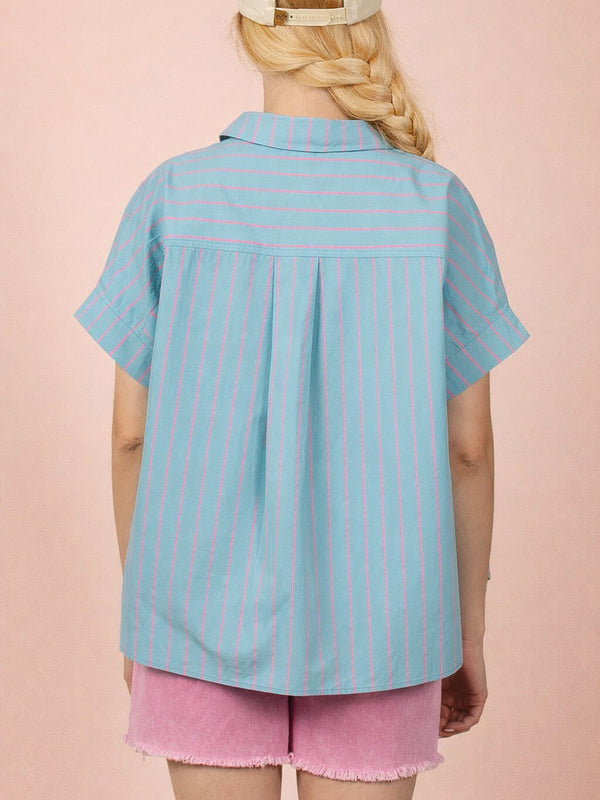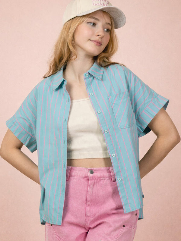 + Oversized Striped Button Down Casual Shirt Top.