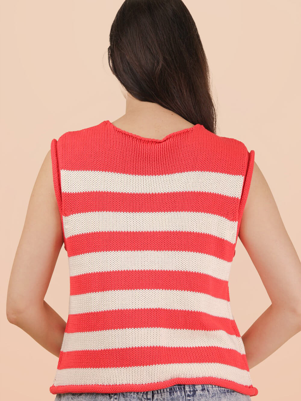 Women's Stripe Button Sweater Vest - RED / SM is backordered and will ship as soon as it is back in stock.