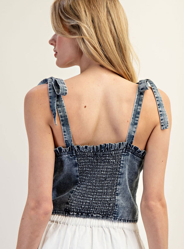 Women's Tie Strap Top - DENIM / SM