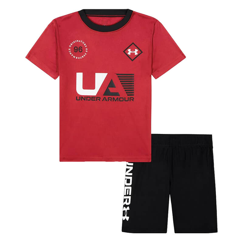 Youth Under Armour Soccer S/S Tee & Shorts Set - RED / 4 is backordered and will ship as soon as it is back in stock.